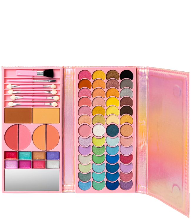 Få det ultimative makeup-sæt med Martinelia Let’s Be Mermaids Big Makeup Wallet! Denne flotte foldepung er fyldt med alt, hvad små makeup-entusiaster behøver. Med hele 52 øjenskygger, 8 lipgloss, 6 blush & bronzers, 4 applikatorer og 2 børster kan bør